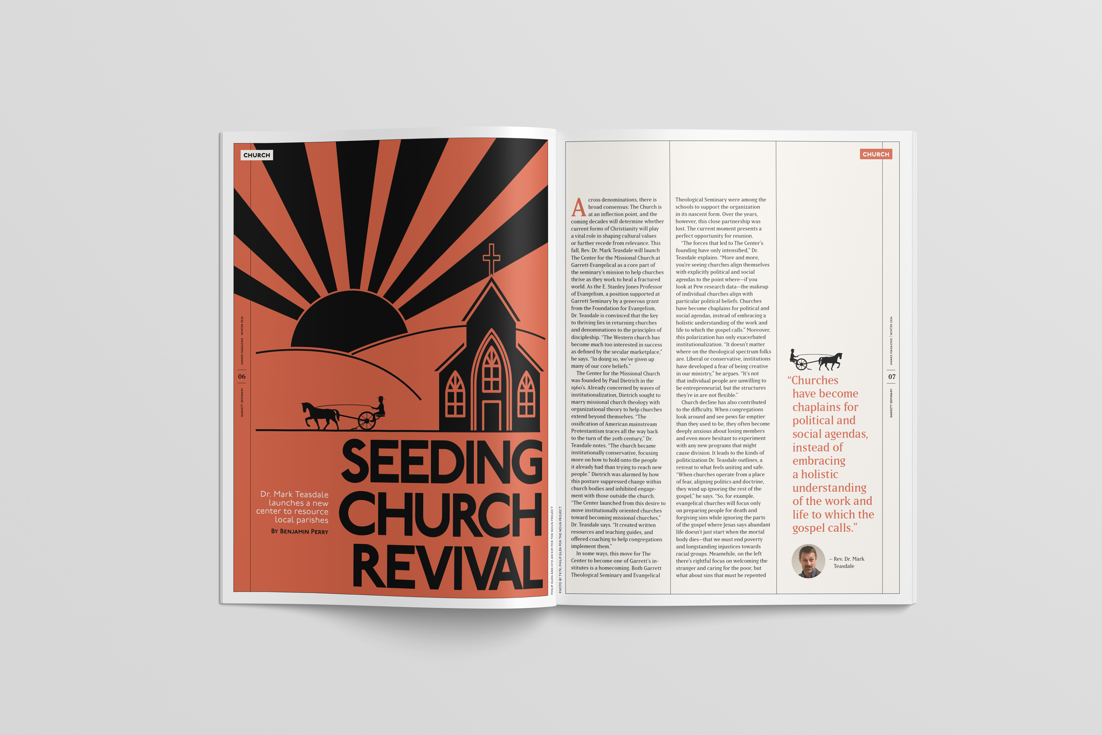 Led a complete redesign of Aware Magazine, the alumni magazine of Garrett-Evangelical Theological Seminary, a progressive seminary in Evanston, Il.
